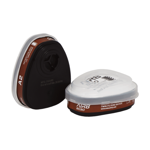 Combination protection: particulate filter provides P2 level protection against dusts, mists and fumes; A2 cartridge gives Class 2 protection against gases and vapours from organic compounds (boiling point >65°C).