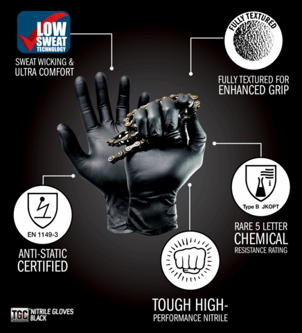 TGC Black Nitrile Powder Free Disposable Gloves